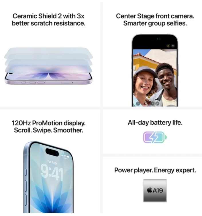 512GB ROM | 48 MP DUAL REAR CAMERA | 18 MP FRONT CAMERA | A19 CHIP, 6 CORE PROXESSOR | HEXA CORE | 6.3 INCH OLED DISPLAY