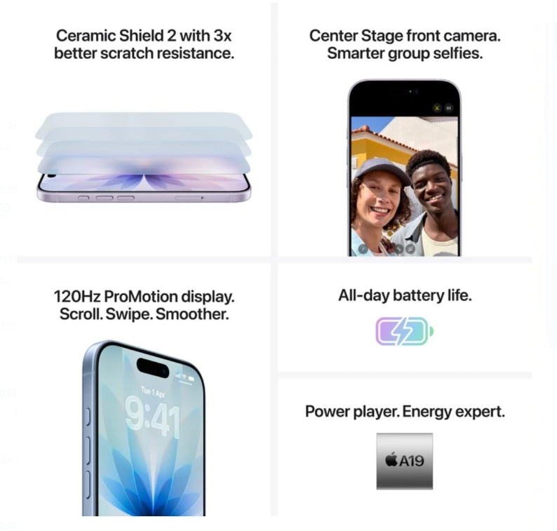 256GB ROM | 48 MP DUAL REAR CAMERA | 18 MP FRONT CAMERA | A19 CHIP, 6 CORE PROXESSOR | HEXA CORE | 6.3 INCH OLED DISPLAY