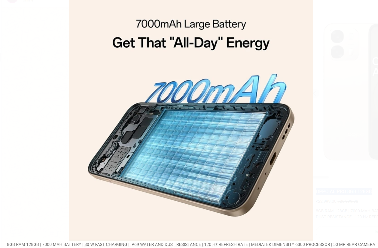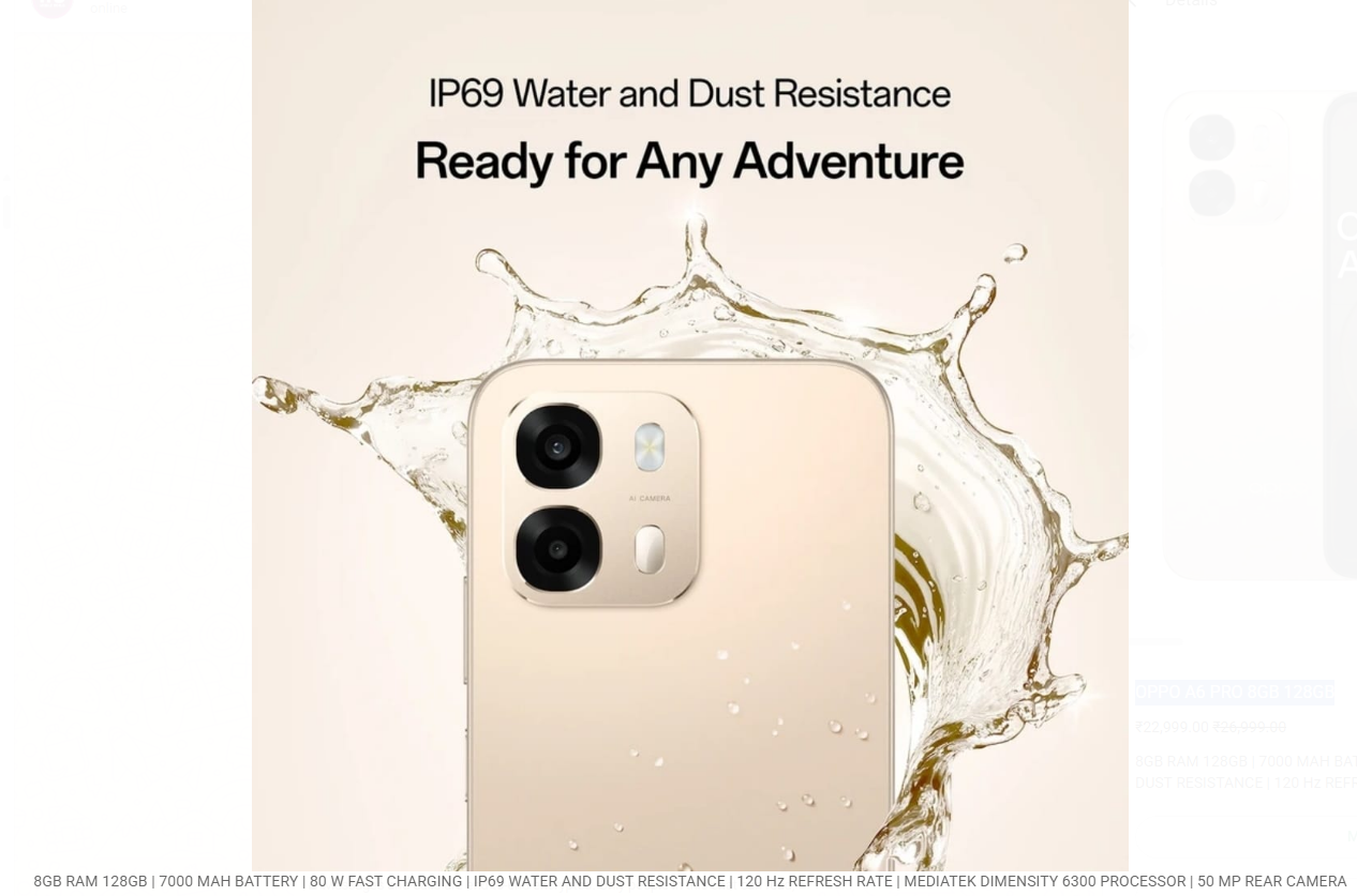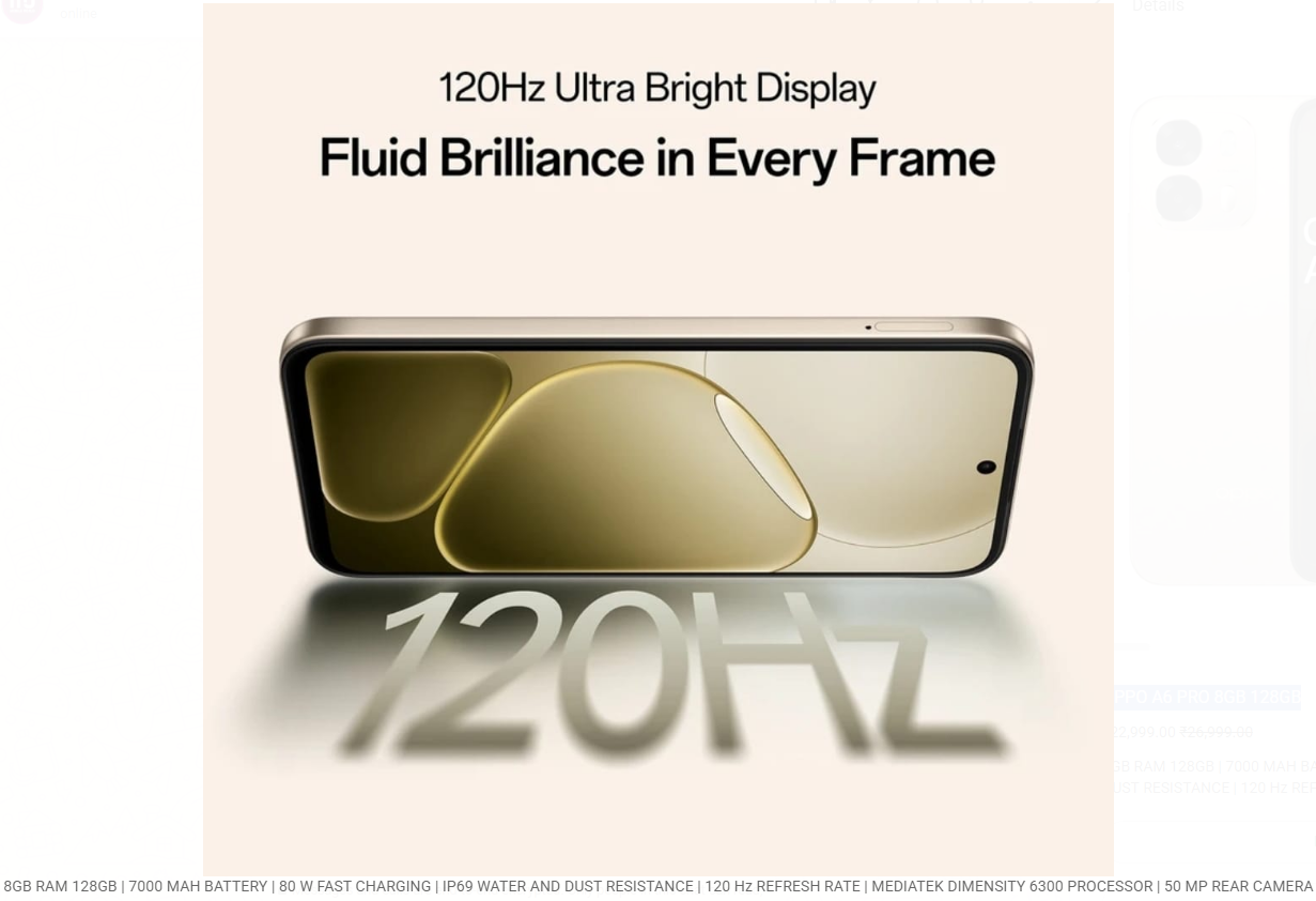 8GB RAM 128GB | 7000 MAH BATTERY | 80 W FAST CHARGING | IP69 WATER AND DUST RESISTANCE | 120 Hz REFRESH RATE | MEDIATEK DIMENSITY 6300 PROCESSOR | 50 MP REAR CAMERA