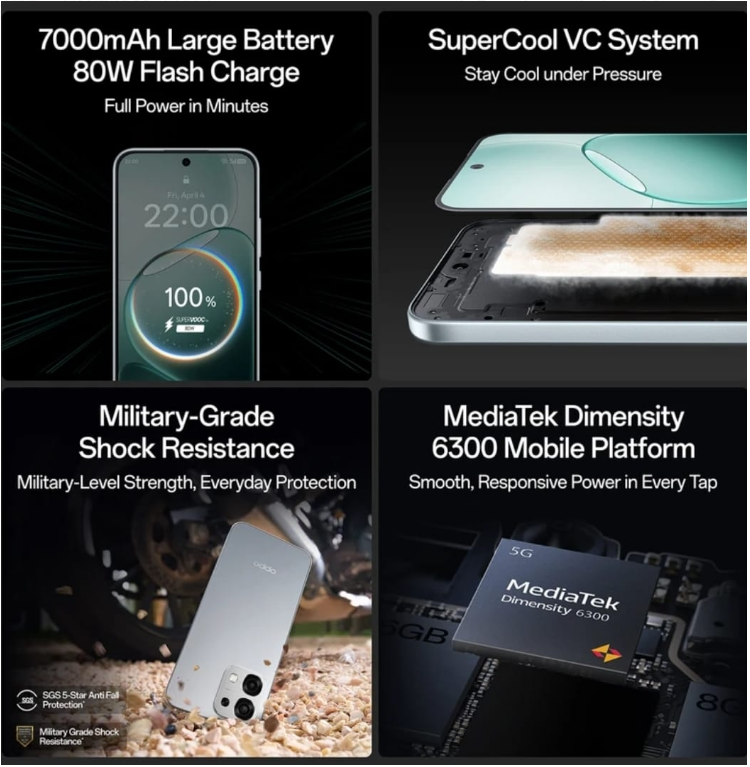 8GB RAM 256GB ROM | 7000 MAH BATTERY | 80 W FAST CHARGING | 120 Hz REFRESH RATE | 50 MP CAMERA | MEDIATEK 6300 PROCESSOR | 120 Hz REFRESH RATE