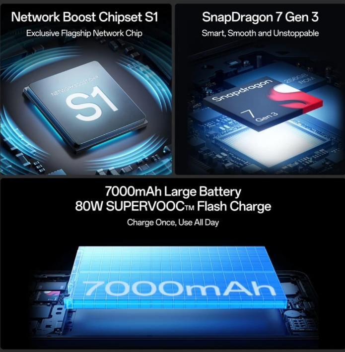 8GB RAM 256GB ROM | 7000 MAH BATTERY | 80W FAST CHARGING | SNAPDRAGON 7 GEN 3 PROCESSOR | 50 MP CAMERA | 32 MP FRONT CAMERA | IP69 WATER AND DUST PROOF | 360° ARMOR BODY PROTECTION