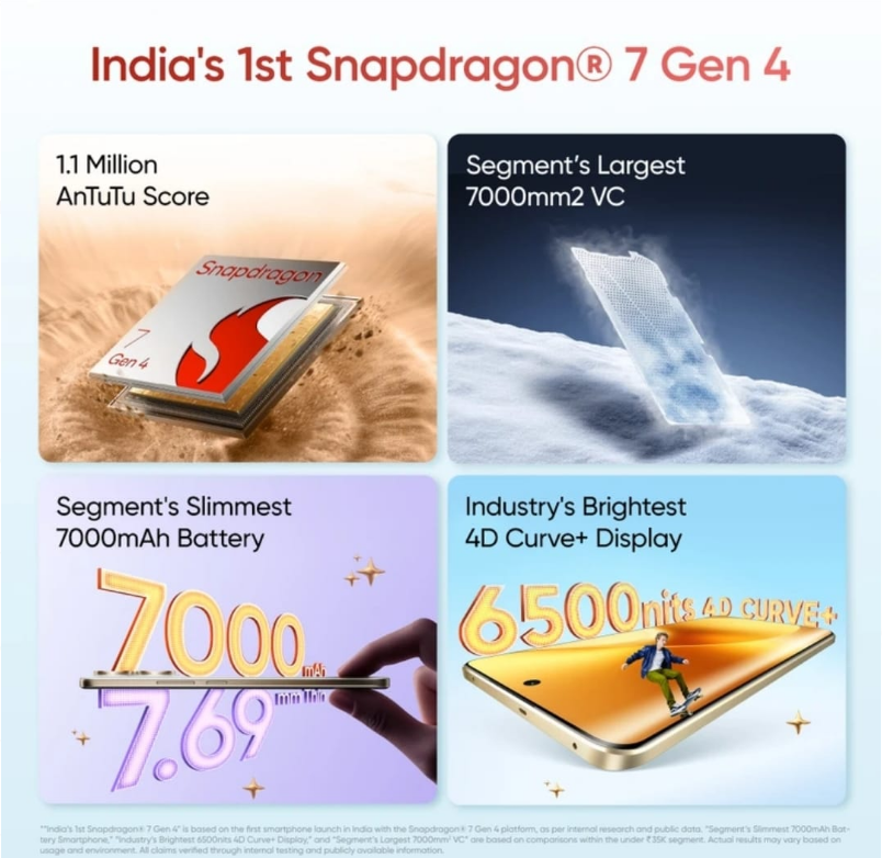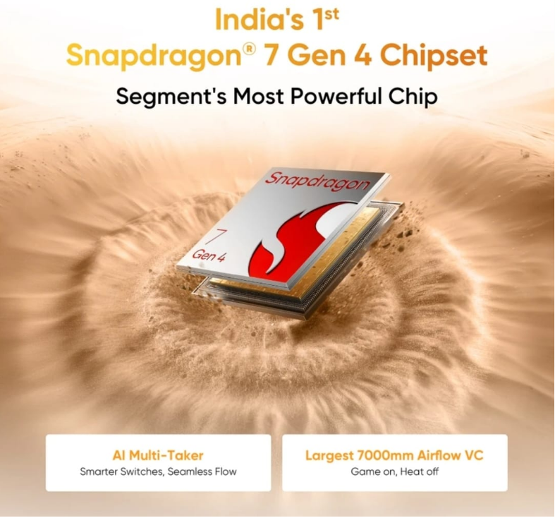 8GB RAM 128GB ROM | 7000 MAH BATTERY | 50 MP DUAL CAMERA | 50 MP SELFIE CAMERA | SNAPDRAGON 7 GEN 4 PROCESSOR | 80 W FAST CHARGING | IP69 WATER AND DUST RESISTANCE