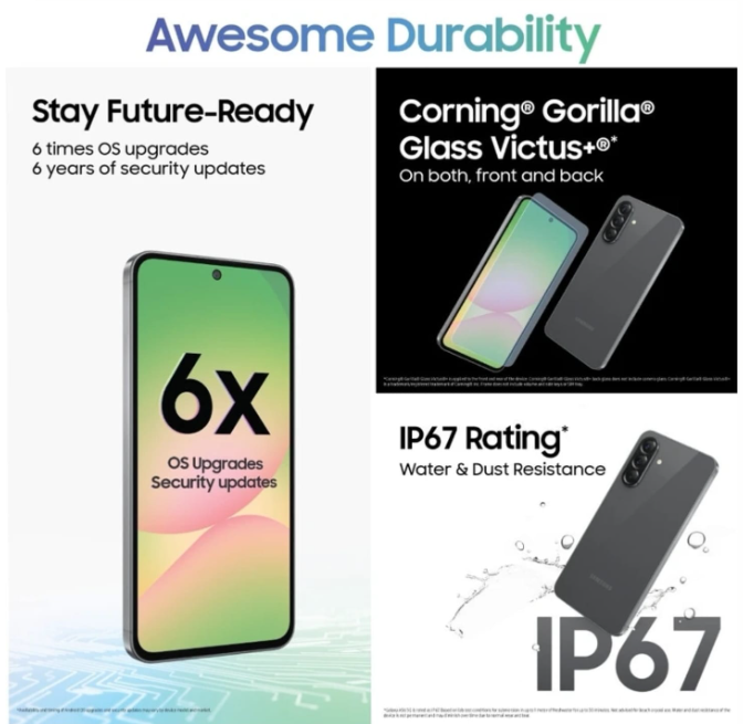 8GB RAM 128GB ROM | 50 MP CAMERA | 12 MP FRONT CAMERA | 6.7 INCH SUPER AMOLED DISPLAY | 5000 MAH BATTERY | IP67 WATER AND DUST RESISTANCE | EXYNOS 1580 PROCESSOR