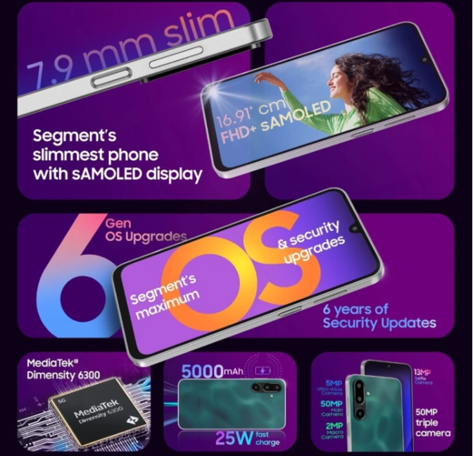 6GB RAM 128GB ROM | 50 MP CAMERA | 13 MP SELFIE CAMERA | 5000 MAH BATTERY | MEDIATEK DIMENSITY 6300 PROCESSOR | 6 YEAR OS UPGRADE