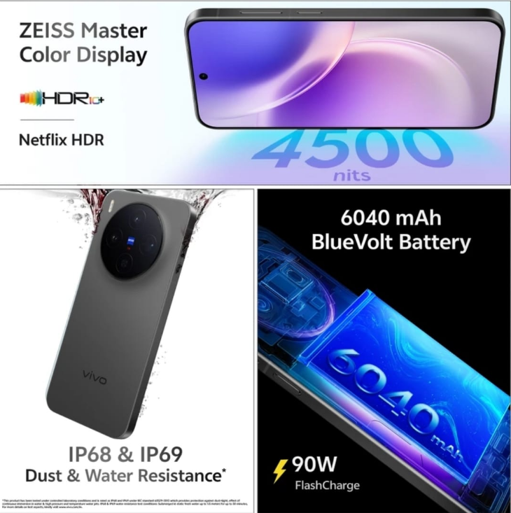 12GB RAM 512GB ROM | 6040 MAH BATTERY | 90 W FAST CHARGING | 200 MP ZEISS MAIN CAMERA | MEDIATEK DIMENSITY 9500 PROCESSOR | IP69 WATER AND DUST RESISTANCE | 50 MP FRONT CAMERA