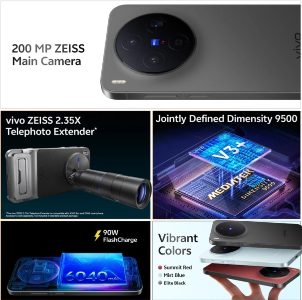 12GB RAM 256GB ROM | 6040 MAH BATTERY | 90 W FAST CHARGING | 200 MP ZEISS MAIN CAMERA | MEDIATEK DIMENSITY 9500 PROCESSOR | IP69 WATER AND DUST RESISTANCE | 50 MP FRONT CAMERA